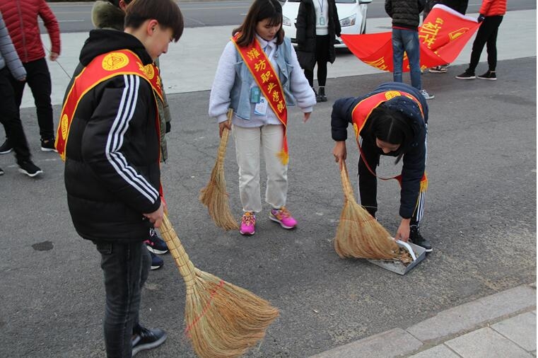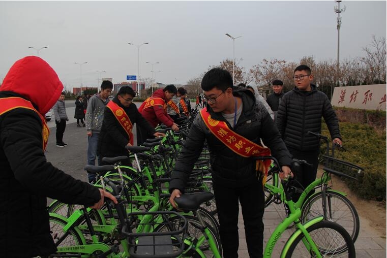 本次活动主要的是学院北门及附近的街道和站牌进行义务清理和打扫。大家对公交站牌进行了认真的清洁,并将停靠在学院门口和内部歪七竖八的共享单车一排排摆放整齐。同学们还热情帮助环卫工人进行街道卫生清理,将落叶打扫干净。