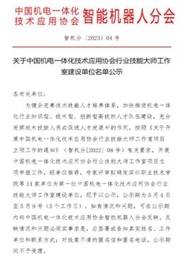 关于中国机电一体化技术应用协会行业技能大师工作室建设单位名单公示(智机分〔2023〕04号)