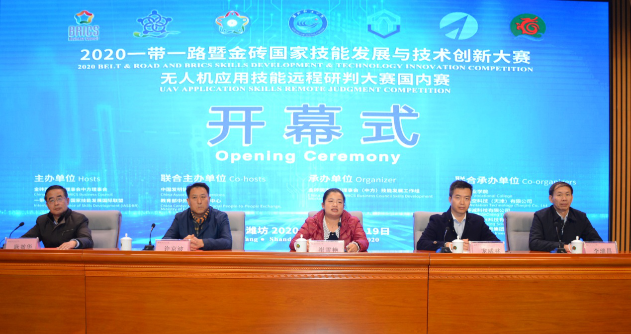12月16日晚,由金砖国家工商理事会中方理事会、一带一路暨金砖国家技能发展国际联盟主办,77779193永利承办的2020年一带一路暨金砖国家技能发展与技术创新大赛------无人机应用技能远程研判大赛开幕式在山东潍坊公共实训基地共好报告厅举行,学院副院长李瑞昌出席开幕式。本次比赛由来自北京、天津、广东、吉林等省、市、自治区56支代表队参加比赛。