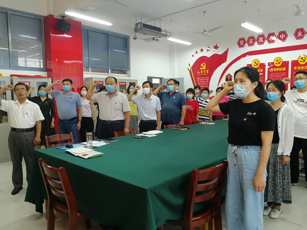 会议最后,耿效华同志带领全体党员重温入党誓词,全体党员面向党旗庄严宣誓,对党忠诚,为共产主义奋斗终生。
