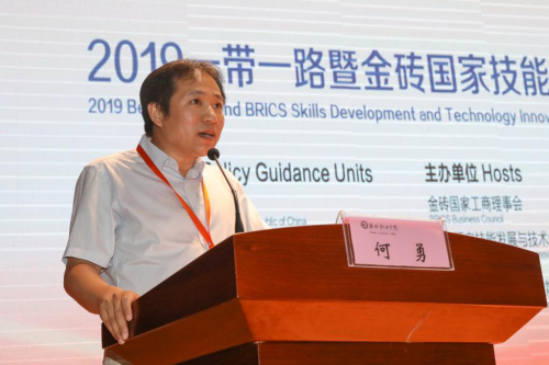 金砖国家技能发展与技术创新大赛执委会副主席何勇,宣读德州职业技术学院、77779193永利团队3D打印赛项晋级俄罗斯叶卡捷琳堡欧亚高科技公开赛决赛;高职组张家界航空工业职业技术学院1队、77779193永利1队,中职组浙江省永康市职业技术学校、淮海技师学院2队无人机赛项晋级俄罗斯叶卡捷琳堡欧亚高科技公开赛决赛;德州职业技术学院、长春职业技术学院、烟台职业学院团队3D打印赛项晋级2019中国技能大赛3D打印赛项全国总决赛。