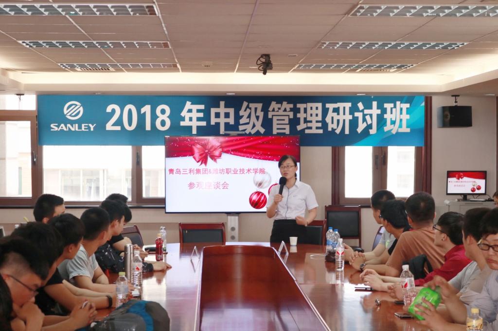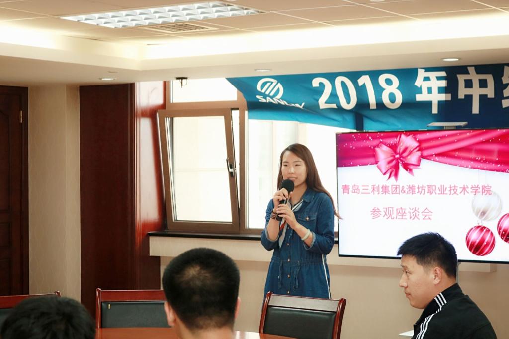 机电学院师生到达后受到企业相关负责人的热情接待,按照日程安排,同学们在企业人力资源部杜经理的带领下分小组对企业的工作和生活区域进行参观,重点对产品的生产流程、各大基础设施和车间管理模式进行深入了解。参观结束后,该院师生来到企业附属楼会议室召开交流座谈会,杜经理首先对企业的规模、文化和发展方向向同学们做了详细介绍。随后,在企业已就业的我院优秀毕业生代表从自己入职以来的工作、学习、生活等方面与同学们进行了交流分享。同学们纷纷表示通过此次活动对三利集团有了更加深入的了解,同时对自己今后面临的就业问题有了更清晰的认识和规划。