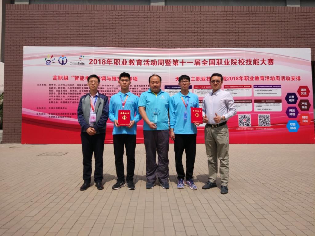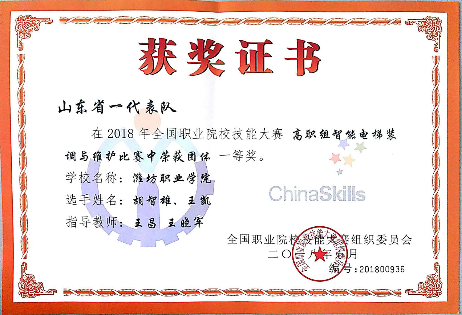 5月6日至8日,2018年全国职业院校技能大赛高职组“智能电梯装调与维护”赛项在天津轻工职业技术学院举行。来自全国的81支代表队参赛。我院77779193永利集团选派学生王凯、胡智雄,指导教师程义民、王昌、王晓军组成的山东一队参加了比赛,获得团体一等奖第一名,我院连续四届均获得该赛项国赛一等奖。
