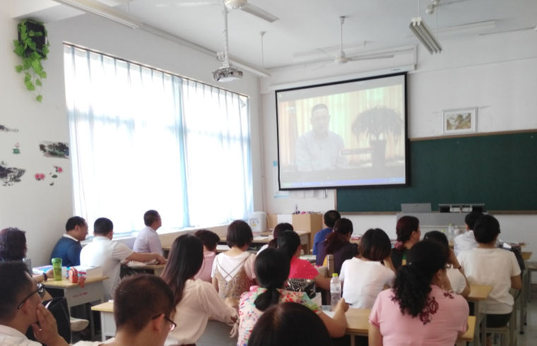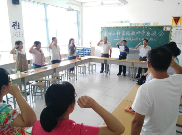 会上全体教师观看了《时代楷模发布厅》播发的黄大年同志先进事迹,与会老师畅谈了学习黄大年同志先进事迹的体会和认识,并纷纷表示要学习黄大年同志心有大我、至诚报国的爱国情怀,学习他教书育人、敢为人先的敬业精神,学习他淡泊名利、甘于奉献的高尚情操,随后全体教师面对国旗宣誓,立志做好 “四有”合格教师,在召开的教师代表座谈会上,大家围绕“如何做好学生的领路人”这一主题展开座谈。全体教师表示,要响应党的号召,加强师德修养,提高业务水平,不忘初心,做好学生的引路人。