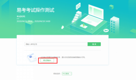 点击“调试设备”测试本机摄像头是否可用,如能清晰地看到图像,说明摄像头调用正常,即可登录考试。
