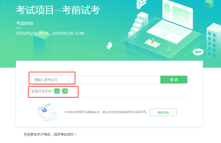 注:若考试未到登录时间,则登录框会显示距离开考还有多久的倒计时。