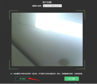 (3)点击进入考试按钮后,页面提示拍照,确保拍照光线充足、照片清晰。系统会自动提示照片拍照建议,确定后继续考试。