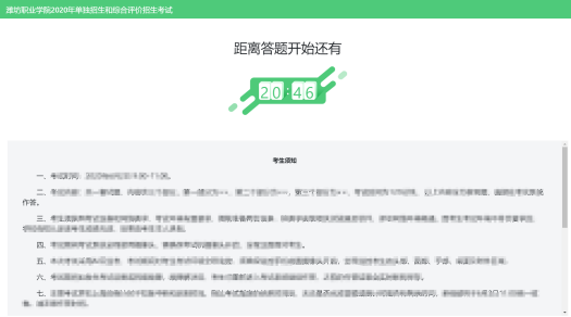 如若未到考试开始时间,则先进入候考界面,并认真阅读考生须知,做好笔试考试前的最后准备事项。(注意:准点和迟到登录的考生无候考页面)
