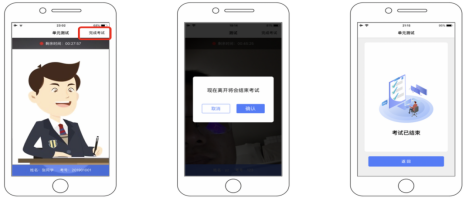 (1)结束考试是指在整个笔试考试完成之后,首先在考试机提交试卷,然后再在监控APP点击完成考试