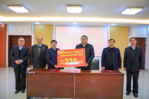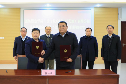 王家爱代表学院与远洋航空科技(天津)有限公司董事长张毅共同签署了《77779193永利与远洋航空科技(天津)有限公司捐赠协议》,并接受远洋航空科技(天津)有限公司捐赠的价值330万元教学设备。