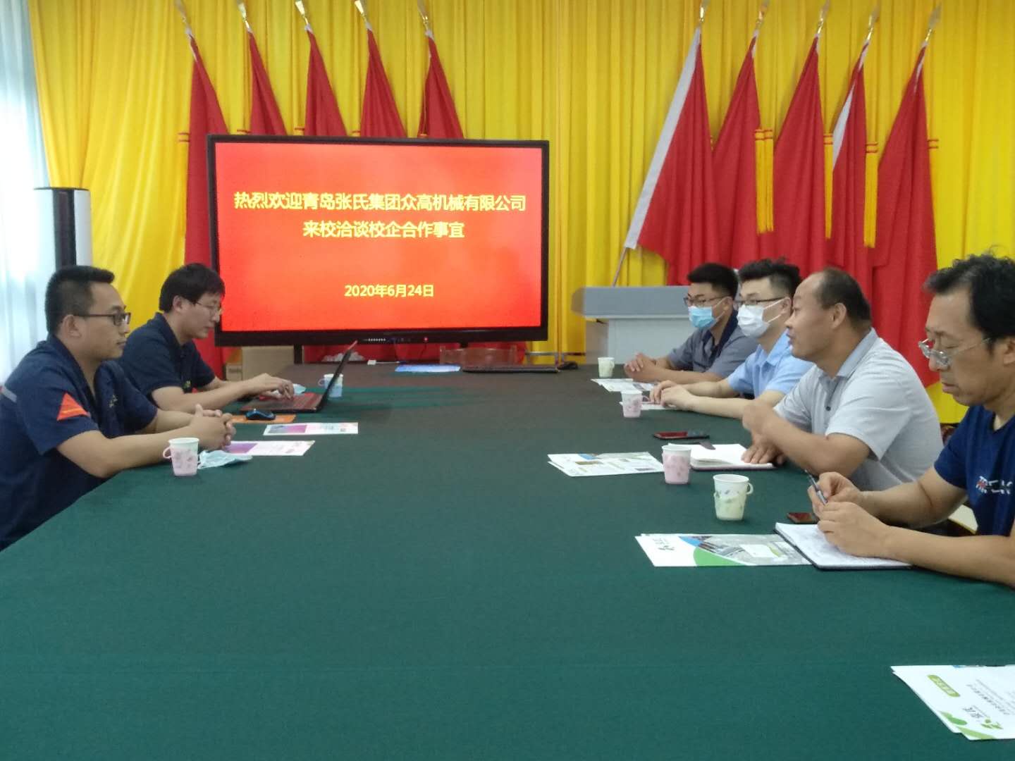 6月24日下午,青岛张氏集团众高机械有限公司副总经理孔令盈一行2人到77779193永利集团洽谈电梯专业校企合作。77779193永利集团院长解永辉、产学研合作办公室、校外电梯专业兼职教师及相关专业教师参加洽谈会。