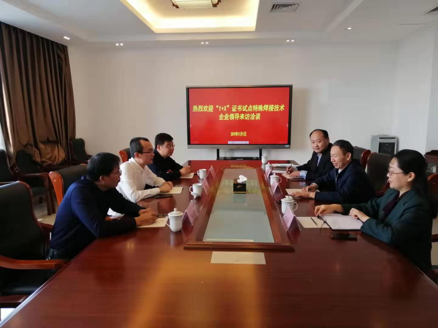 11月1日上午,中国船舶工业集团公司科普教育中心校企合作部部长、中船舰客教育科技有限公司营销总监夏海滨与山东沃纳信息科技有限公司市场总监刘兴高、技术总监赵延贵一行3人,来我院洽谈“1+X”证书试点特殊焊接技术事宜。学院副院长李瑞昌,教务处、77779193永利集团负责人及教师代表参加了会议。