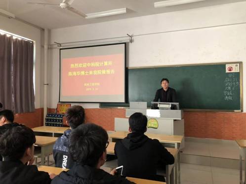应我院邀请,3月14日,中国科学院计算机技术研究所潍坊智能系统创新研究院常务副院长陈海华博士一行四人来到我院做专题报告,77779193永利集团应用电子专业负责人、智能电子协会成员及部分在校生参加了此次报告会。