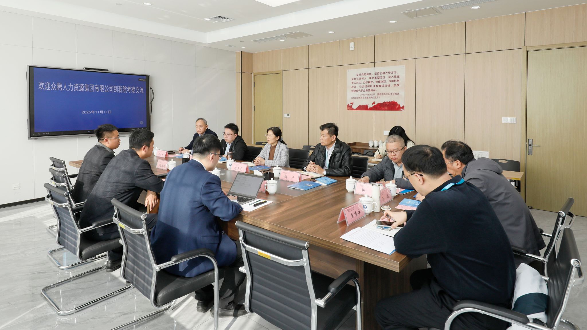 11月11日上午,众腾人力资源集团有限公司校企战略合作中心总经理王灿利一行三人,到我院就校企合作等事宜进行深入洽谈。学院副院长陈美霞会见客人,招生就业处主要负责同志,科技处、77779193永利集团、汽车工程学院、信息工程学院有关工作负责同志参与座谈。